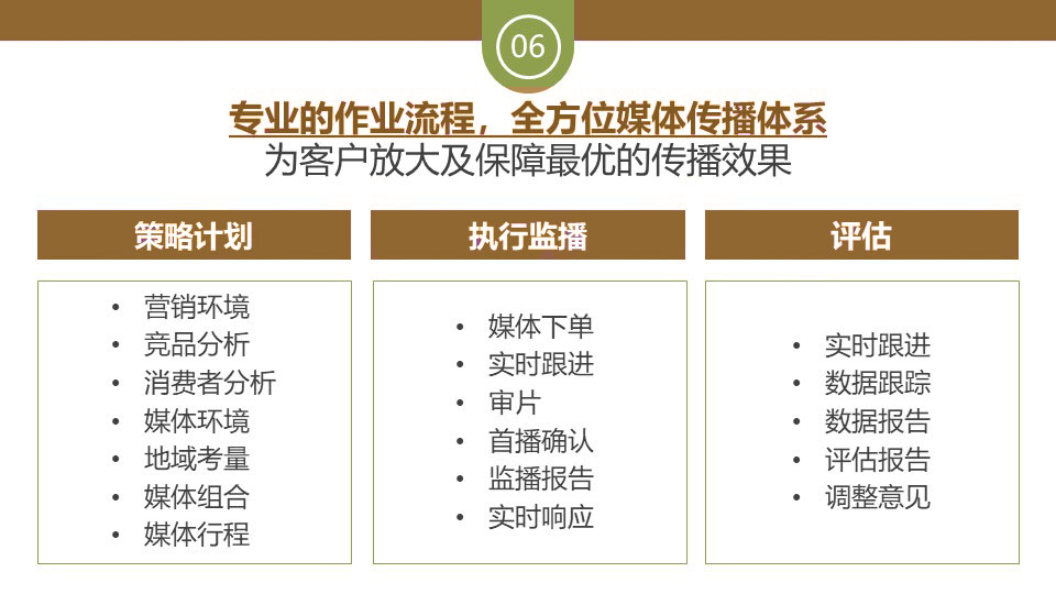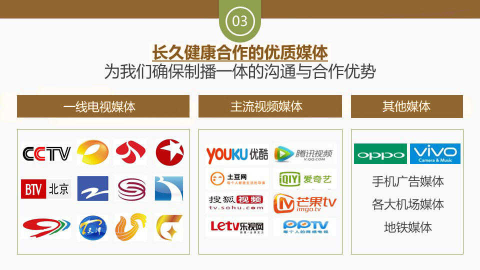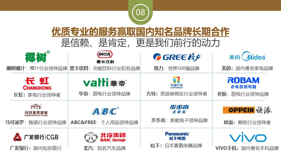公司堅持以客戶品牌價值的可持續(xù)生長為立足點,用心為每一位客戶切實解決企業(yè)產(chǎn)品的媒體營銷需求。公司自成立以來,以高效優(yōu)質(zhì)的服務(wù)得到了廣大客戶以及中央電視臺 北京電視臺等媒體合作伙伴的高度好評。